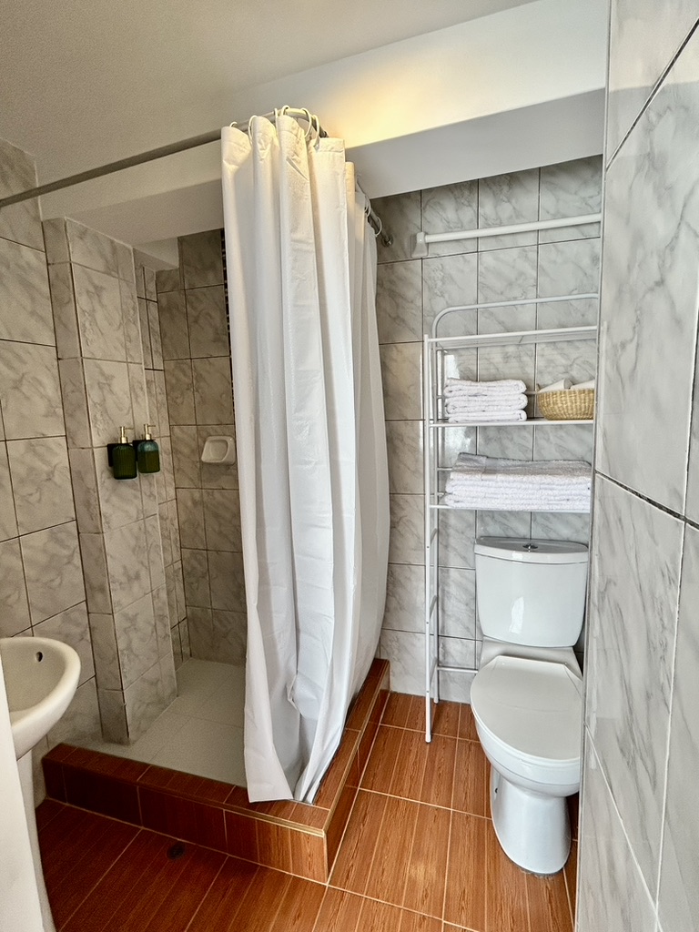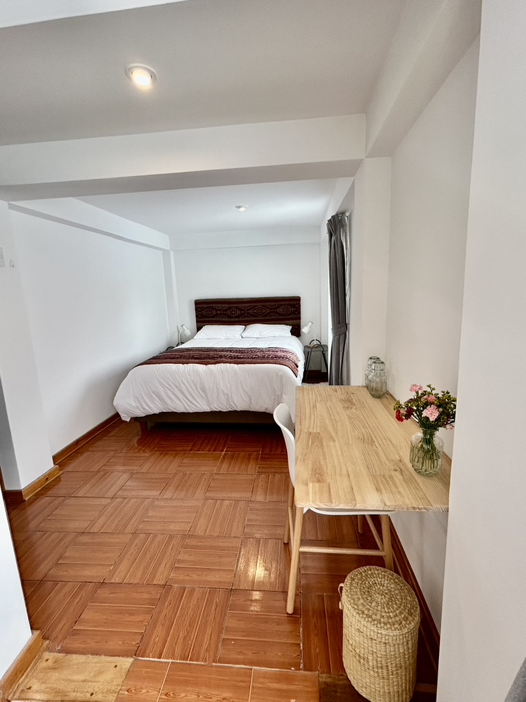 Amplia y luminosa habitación de 15 m², diseñada para brindar el máximo confort. Equipada con baño privado con agua caliente, Wi-Fi, perchero y un práctico escritorio para mayor comodidad.