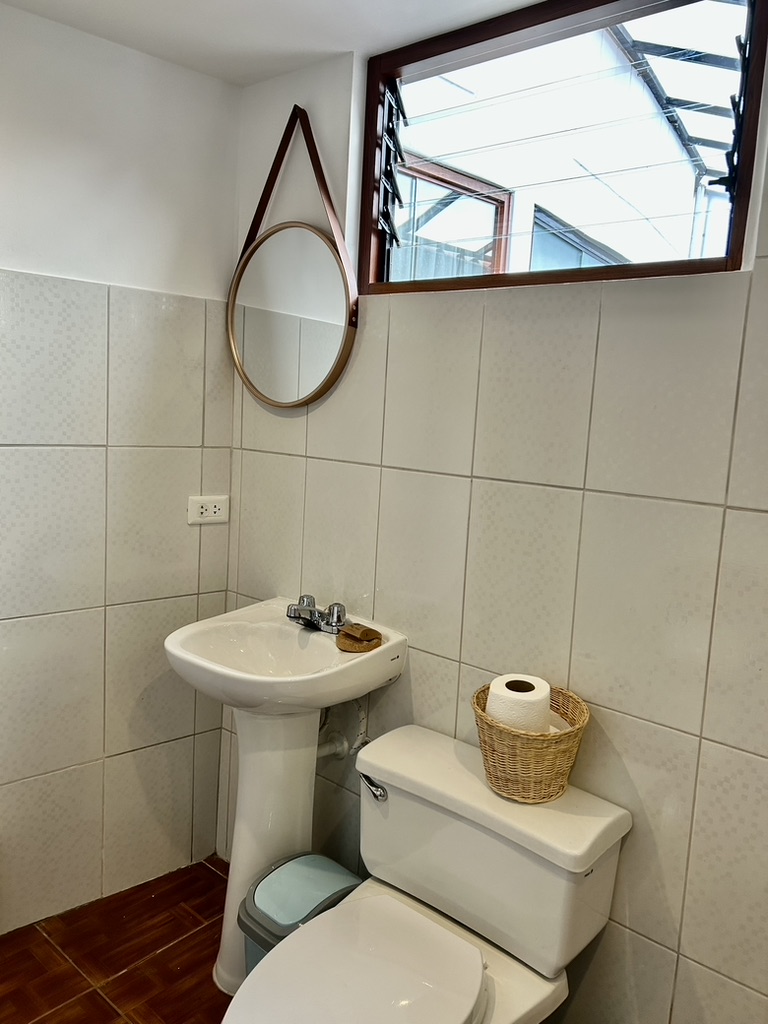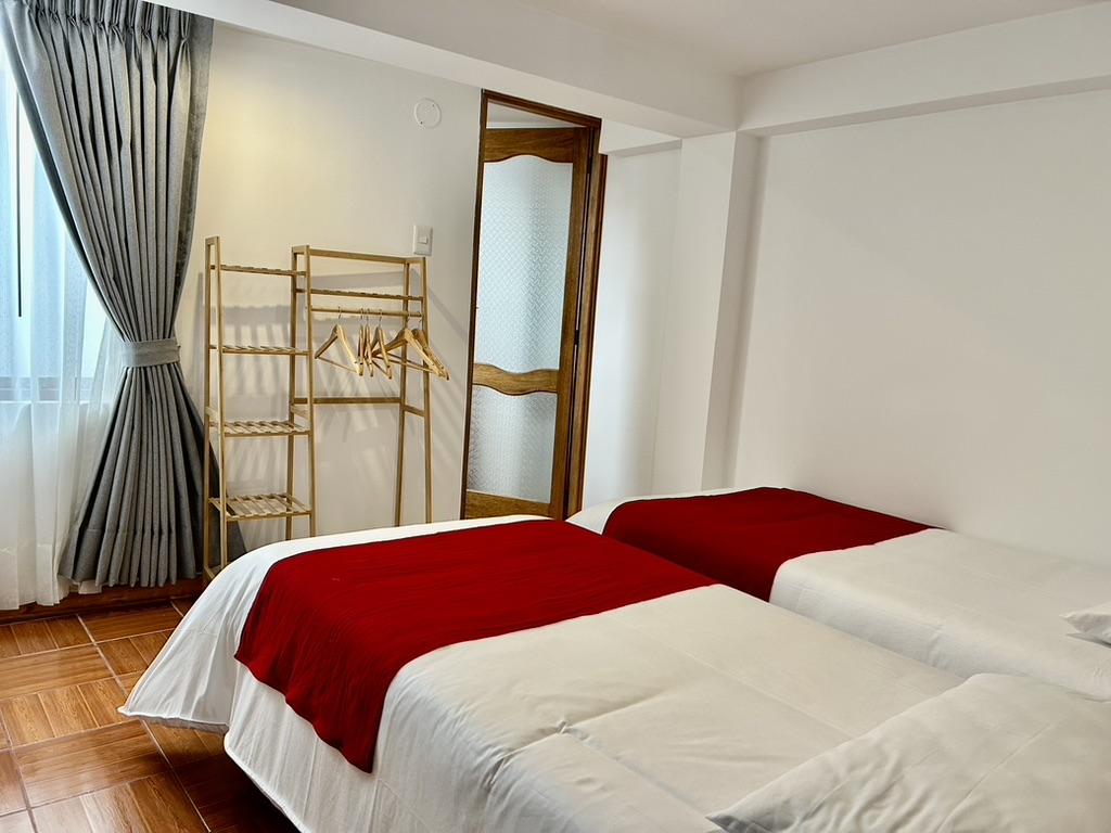 Acogedora y luminosa habitación de 14 m², equipada con baño privado con agua caliente, Wi-Fi y un práctico perchero para mayor comodidad.
